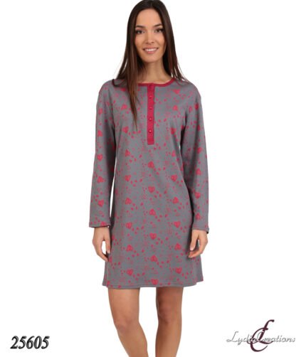 Νυχτικό Κλασικό Εμπριμέ με Μακρύ Μανίκι