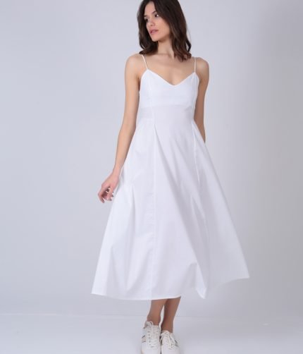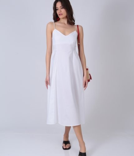 Φόρεμα midi με λεπτές τιράντες και άλφα γραμμή και σφιγκοφολιά πλάτη