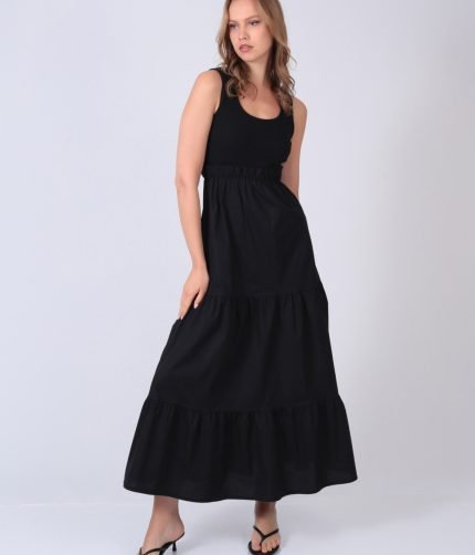 Μακρύ φόρεμα με ριπ τοπ και ποπλινα φούστα βολάν