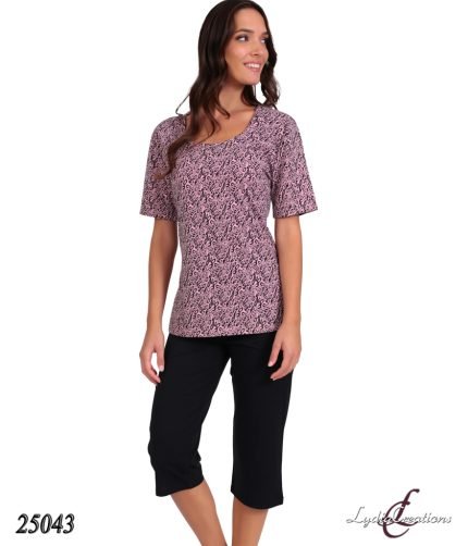 Πυτζάμα Γυναικεία με Κοντό Μανίκι και Παντελόνι Κάπρι