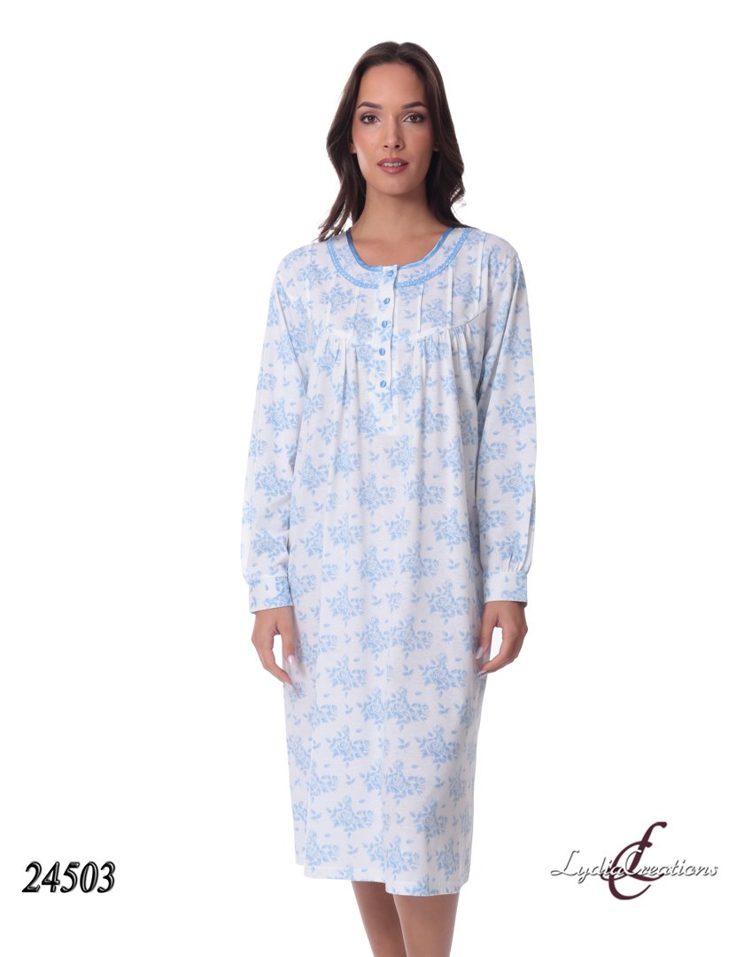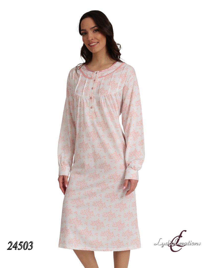 Νυχτικό Κλασικό Εμπριμέ με Μακρύ Μανίκι