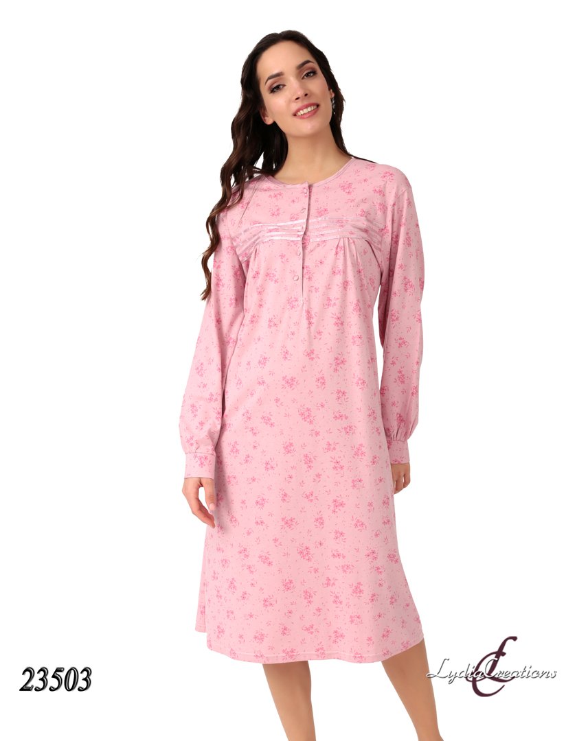 Νυχτικό Κλασικό Εμπριμέ με Μακρύ Μανίκι