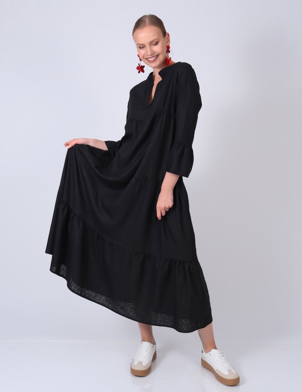 Καφτάνι Λινό/Βισκόζ με βολάν με 3/4 μανίκι