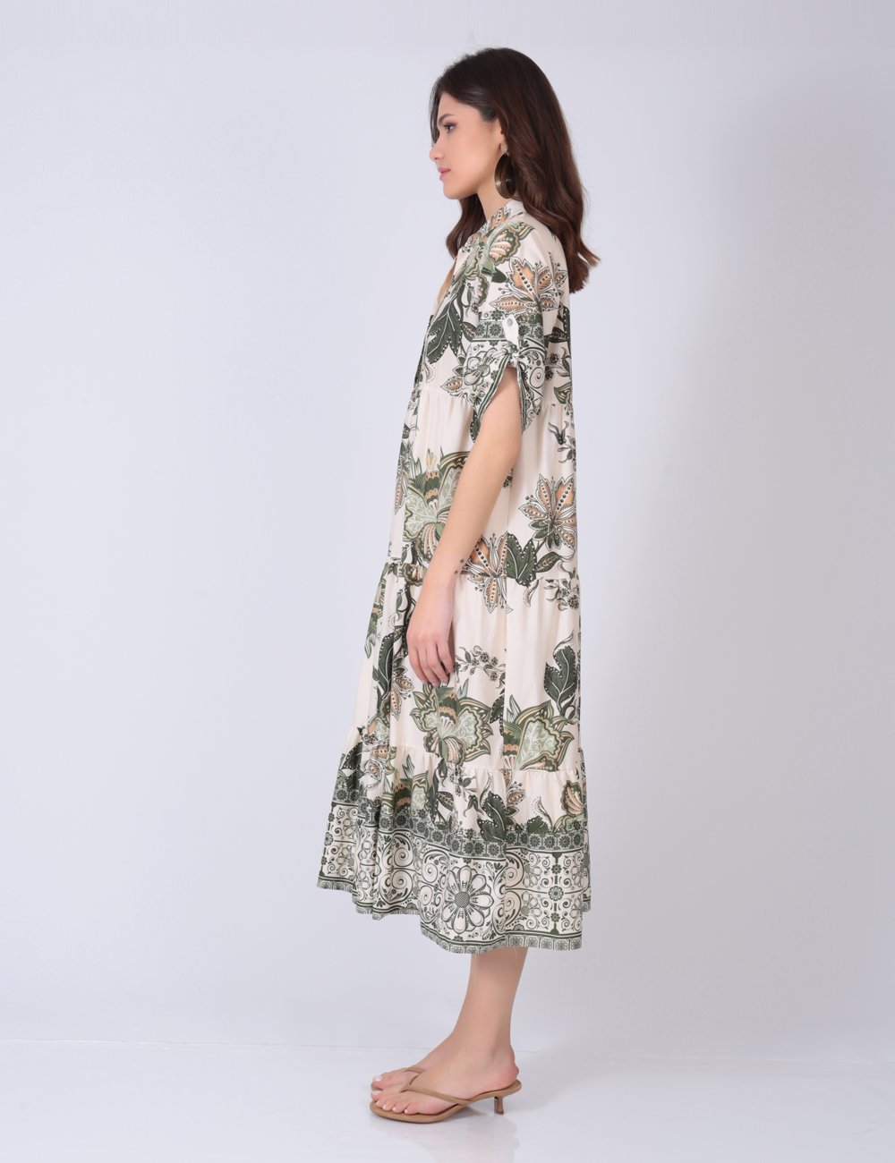 Φόρεμα Resort Βαμβακερό σε Φαρδιά Γραμμή με κουμπάκια και 3/4 μανίκι