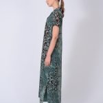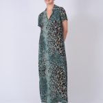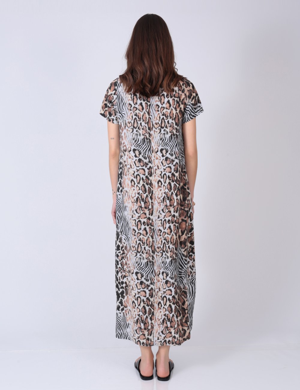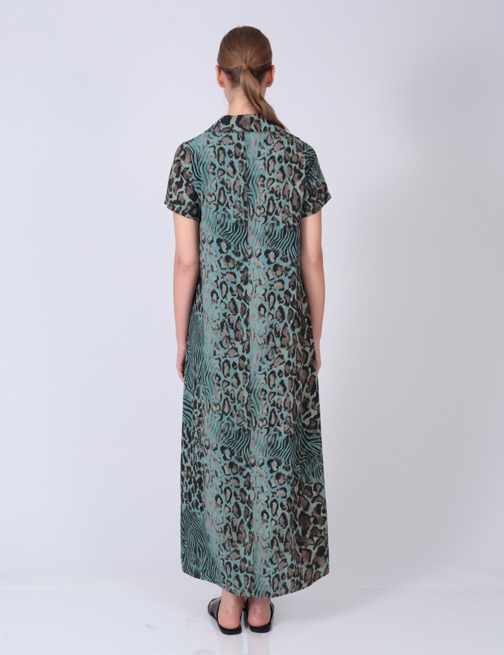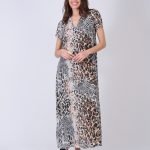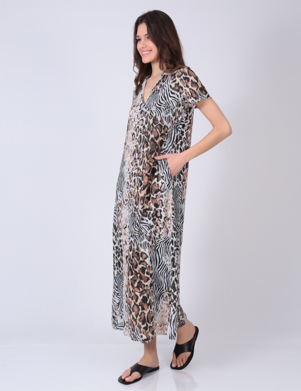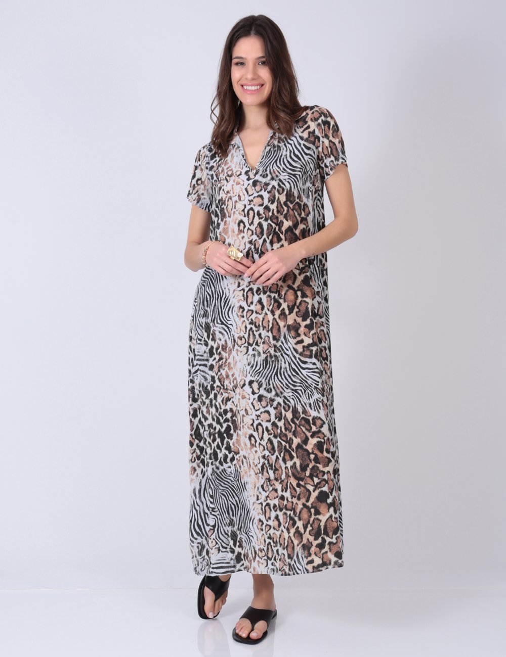 Μακρύ Φόρεμα/Καφτάνι Βισκόζ animal με κοντό μανίκι και γιακά