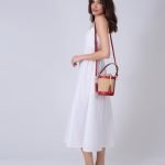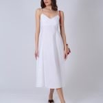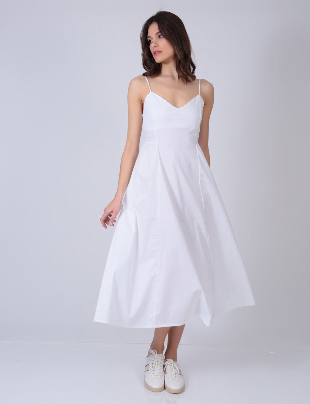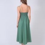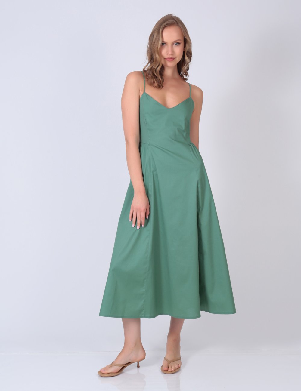 Φόρεμα midi με λεπτές τιράντες και άλφα γραμμή και σφιγκοφολιά πλάτη