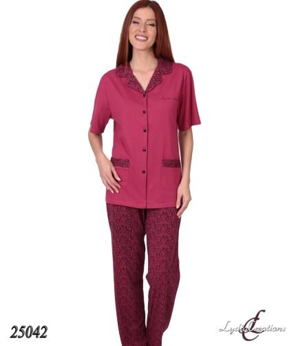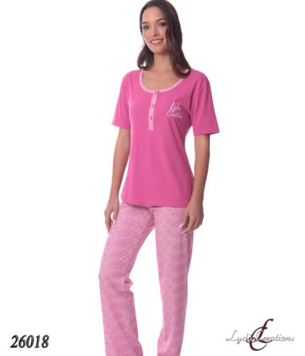 Πυτζάμα Γυναικεία Κουμπωτή με Κοντό Μανίκι και Μακρύ Παντελόνι